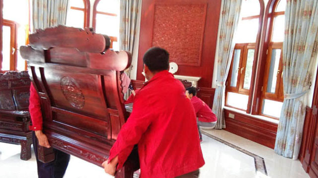 红木家具比较贵重,而且尺寸较大,一般电梯是根本无法装下的,所以根据客户的描述,工人数量定了六位为其服务,当天搬运时我们公司还预留两位补位人员随时待命(这是客户要求的,因为客户的时间不充裕,先过去六位工人,然后评估一下进度,如果在客户指定时间之内完成,就不需要这两位过去了),经过3个小时的工作工人们完成了工作,所有红木家具为受到任何损伤。